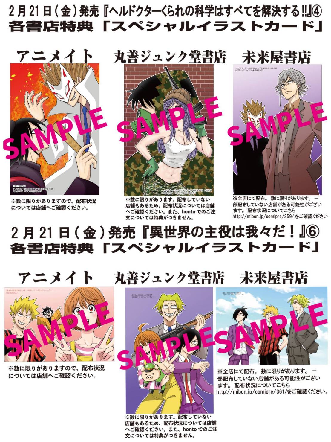アニメイト郡山 書籍情報 加茂ユウジ 先生の 異世界の主役は我々だ 7巻 と ヘルドクターくられの科学はすべてを解決する 5巻が大好評発売中ですコォ 連動購入特典の リバーシブルビジュアルボード もまだございますコォ ぜひ2